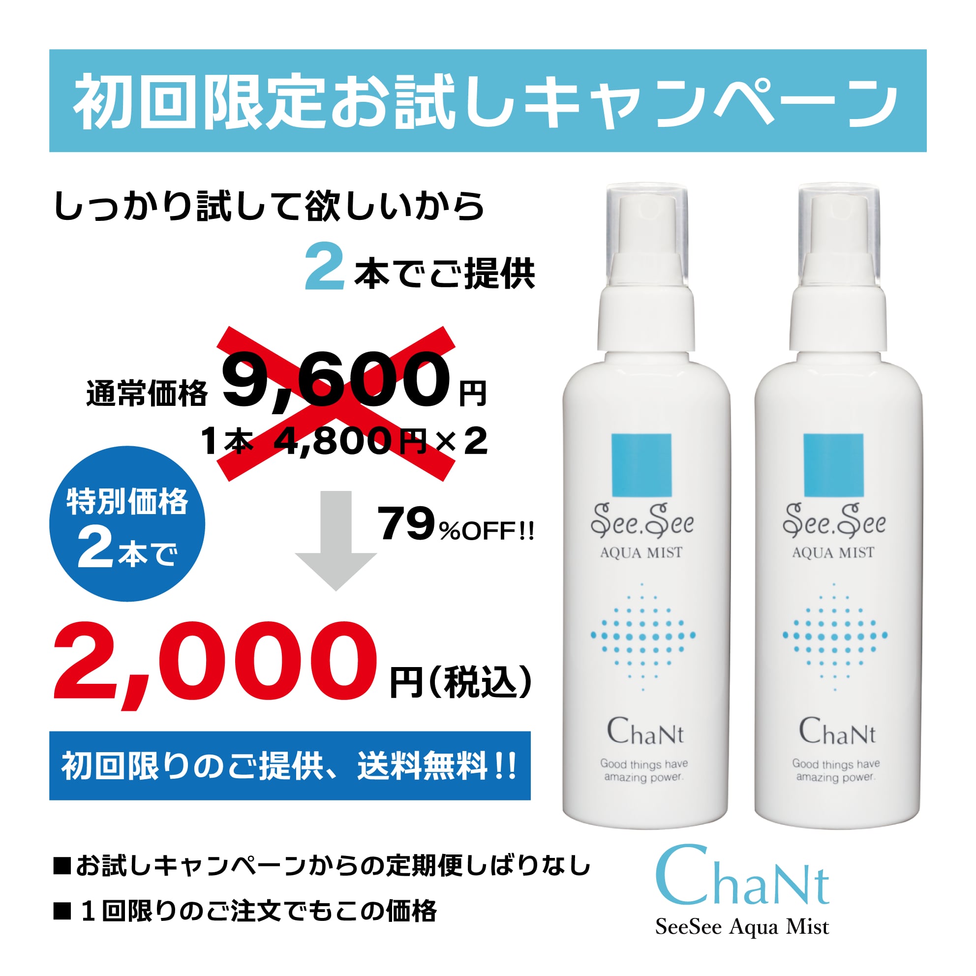送料無料【初回限定お試しキャンペーン】ChaNt See See Aqua Mist:200mL2本セット